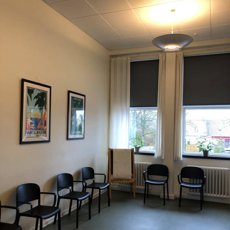 Det er ikke nok at sætte lamper op med en pære i. Det handler om lyskvalitet og lyset rettes mod de steder hvor der er brug for lys. Her lyser lampen op i loftet og patienterne i venteværelset skal være glade for det dagslys der kommer ind ad vinduerne – ellers så det sort ud!