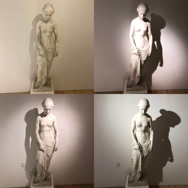 Det er lyset der bestemmer hvordan vi opfatter de ting vi ser. Retning, mængde, farvetone og hårdhed er nogle af de faktorer der spiller ind. Figuren her er belyst på fire forskellige måder med fire vidt forskellige resultater. Det handler om at vælge den helt rigtige løsning til opgaven.