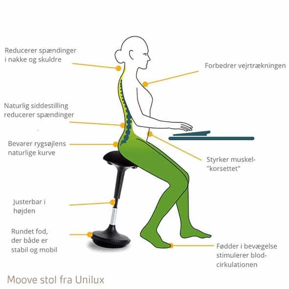 Den bedste siddestilling ser du på billedet: Rytter på hest. Hele kroppen er i balance. Ryggen og nakken er rank, og benene er rettet ud, så blodet kan flyde frit. Du behøver ikke anskaffe en hest, men det er den siddestilling, du skal imitere, når du vælger kontorstol.