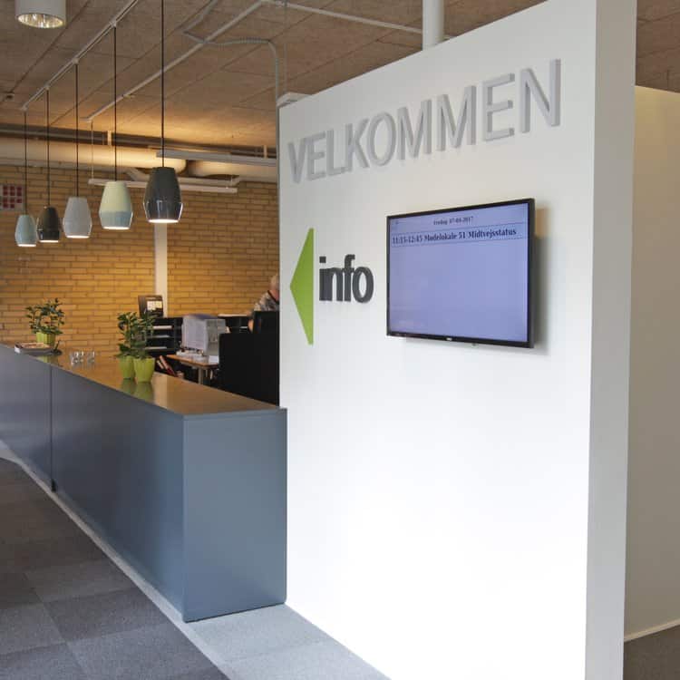 Førhen kunne besøgende borgere ikke finde rundt når de ankom til Ældre & Handicap Afdelingen. Jeg byggede en halvvæg lige overfor indgangen og bød med tydelig skrift på både velkommen og viste vej.